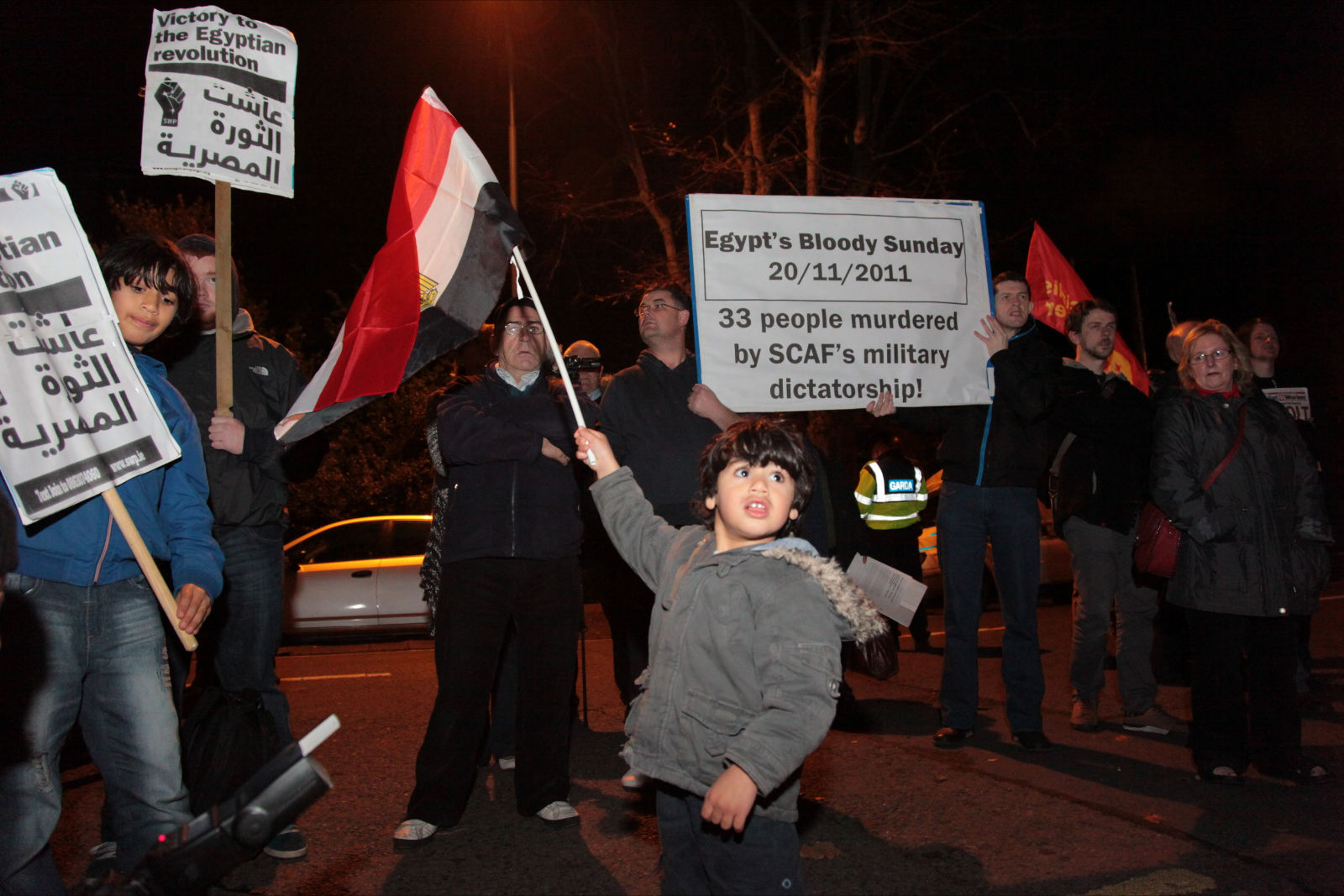 There was a very successful picket of the Egyptian Embassy in Dublin this evening (Monday 21 Nov). It attracted about 100 people at only 24 hours notice. This shows the powerful feelings of solidarity with the Egyptian Revolution that exist everywhere.