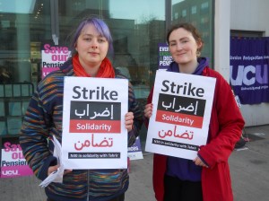 In response to a call by public sector union activists for solidarity with Egypt, striking lecturers, university workers and students at universities across Britain sent messages of solidarity to colleges in Egyptian universities during Wednesday’s N30 strike.