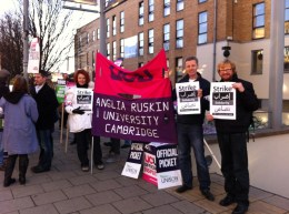 Lecturers and students at Cambridge and Anglia Ruskin Universities took placards in support of the Egyptian revolution to their picket lines.