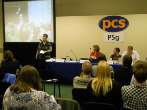Earlier in the week delegates at the PCS Public Service Group Sector conference heard a briefing by MENA Solidarity on developments in the independent unions in Egypt where civil servants have been at the forefront of recent strikes, and video messages of support from two leading women activists in the Independent Property Tax Collectors Union.