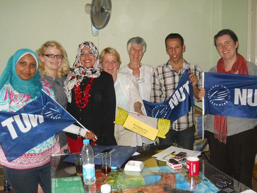 Sheila McGregor and Sally Kincaid from the National Union of Teachers (NUT) and Anne Alexander and Nadine el-Enany from the University and Colleges Union (UCU) met colleagues from the Independent Teachers’ Union, the Egyptian Teachers’ Federation and the 9th March Movement for the Independence of the Universities, as well as a wide range of activists from other unions affiliated to the Egyptian Federation of Independent Trade Unions.