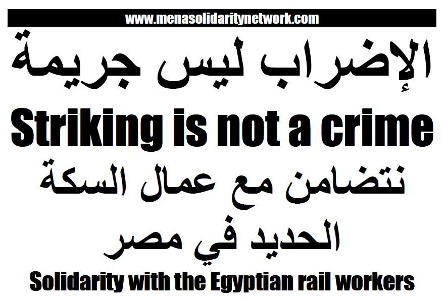 - Rush messages of support for the Egyptian railway workers to us for forwarding to Egypt via menasolidarity@gmail.com