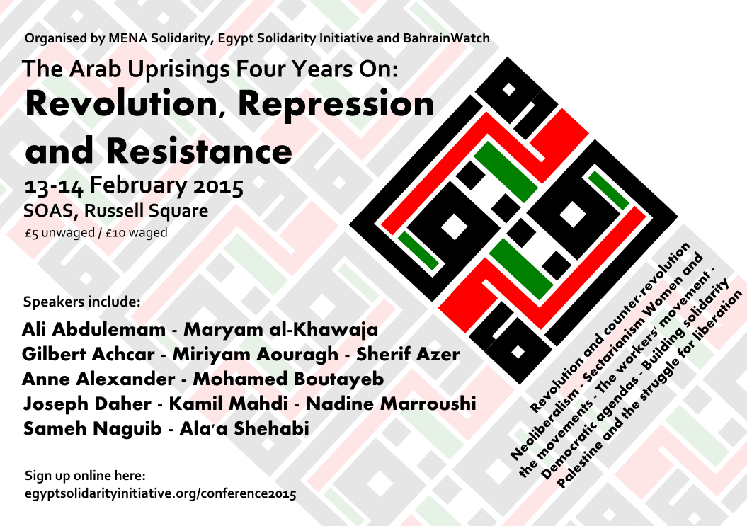 Mohammed will be speaking at our conference on 13-14 February, The Arab Uprisings Four Years On – Revolution, Resistance and Repression. Join us there to hear more about the battle for trade union freedoms and political rights from Morocco to Bahrain. Book online here.