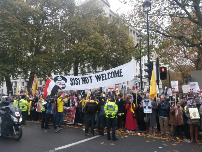 Hundreds joined lively protests last week against the visit of Egyptian president Abdelfattah al-Sisi to the UK. Cameron’s red carpet welcome for Egypt’s military dictator sparked two days of demonstrations on 4 and 5 November, uniting trade unionists, arms trade campaigners, students and Egyptian activists in opposition to the visit.