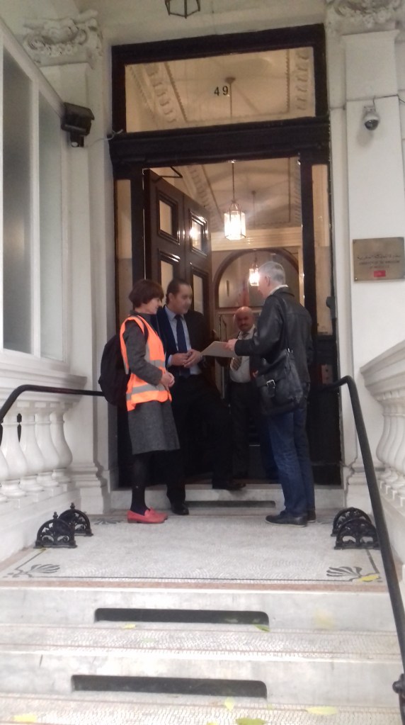 Alan Gibson, a member of the National Union of Journalists’ National Executive Committee, took part in the delegation to the embassy.
