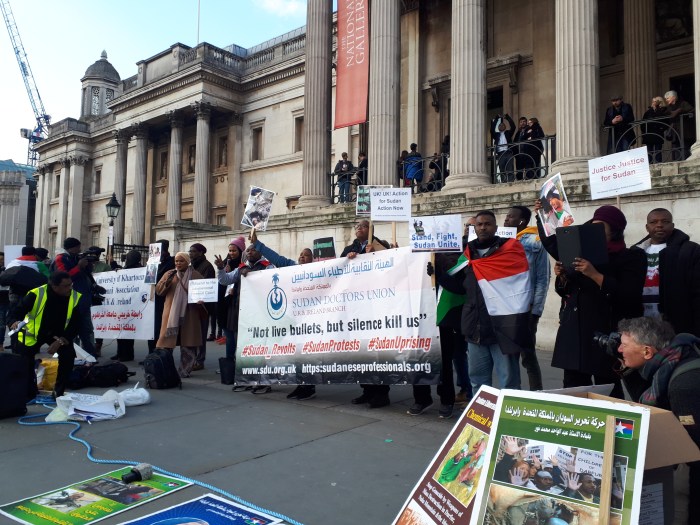 - Join protests and solidarity actions called by Sudanese community organisations in the UK – demonstrate in London, 1pm, Trafalgar Square, every Saturday