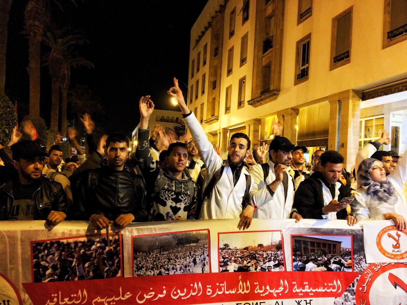 Contract teachers have resisted the authorities’ attempts to stop their movement growing, such as such as salary deductions and threats to sack them or terminate temporary contracts. Officials have questioned the legitimacy of their demands and accused them of serving the interests of the radical political opposition. Finally, the Moroccan authorities resorted to violence against protesting teachers on the night of 23 March during the sit-in outside the parliament building, using water cannons in order to disperse protesters, they also charged the sit-in several times. This resulted in injuries of varying degrees of severity and the hospitalisation of around 60 teachers for treatment to fractures and eye injuries, giving the lie to the claim by the authorities that they only used water cannons to disperse the protest without resorting to violence.