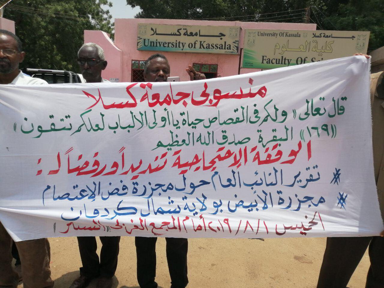 Staff at University of Kassala demanding justice for those killed in the massacre of protesters in Khartoum on 3 June 2019 by the military and the RSF militia