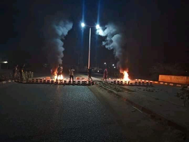 Activists guard a barricade on 2 November – photo via the Karray Resistance Committees Coordination