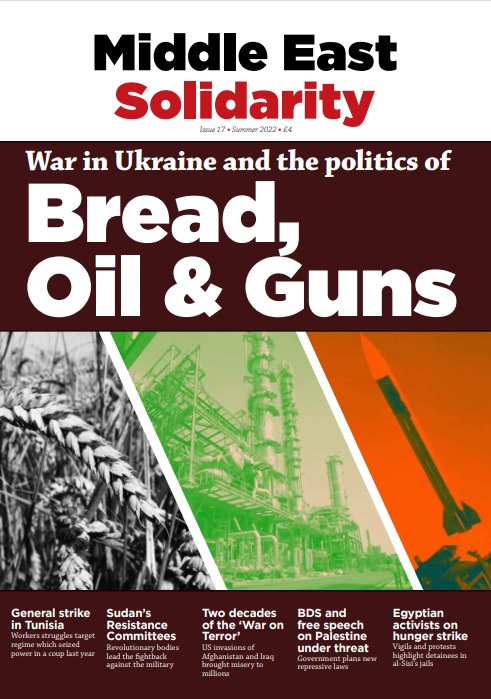 Middle East Solidarity magazine is now available to download. You can help support our work by making a donation for your copy below. Click to take out an annual solidarity subscription. Download your pdf of the current issue here. Scroll down for previous issues.
