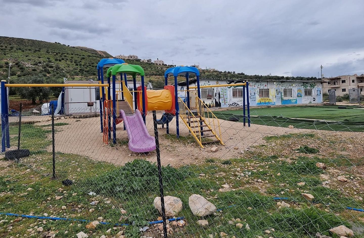 “On the night of 8 September 2017 around one hundred volunteers rebuilt the school that had been demolished three weeks earlier this time with bricks and cement instead of the previous portable classrooms. Israeli forces tried to stop them, firing tear gas, bullets and stun grenades. They completed the build and lessons began on the following day. In the years since the school has been upgraded with walls being plastered and tiled, a new roof, trees planted and a play area. This is what was destroyed on 7 May 2023.”
