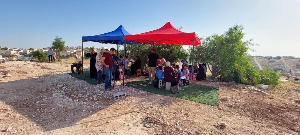 “The struggle to keep the school of Jubbet al Dib continued today as the temporary tents financed by HIRN were set up by 8:00 AM. The teachers presented to their students one of the most important lessons in their lives; the lesson of perseverance, peaceful resistance and the value of steadfastness especially as the 75th anniversary of the Nakba is upon us.”