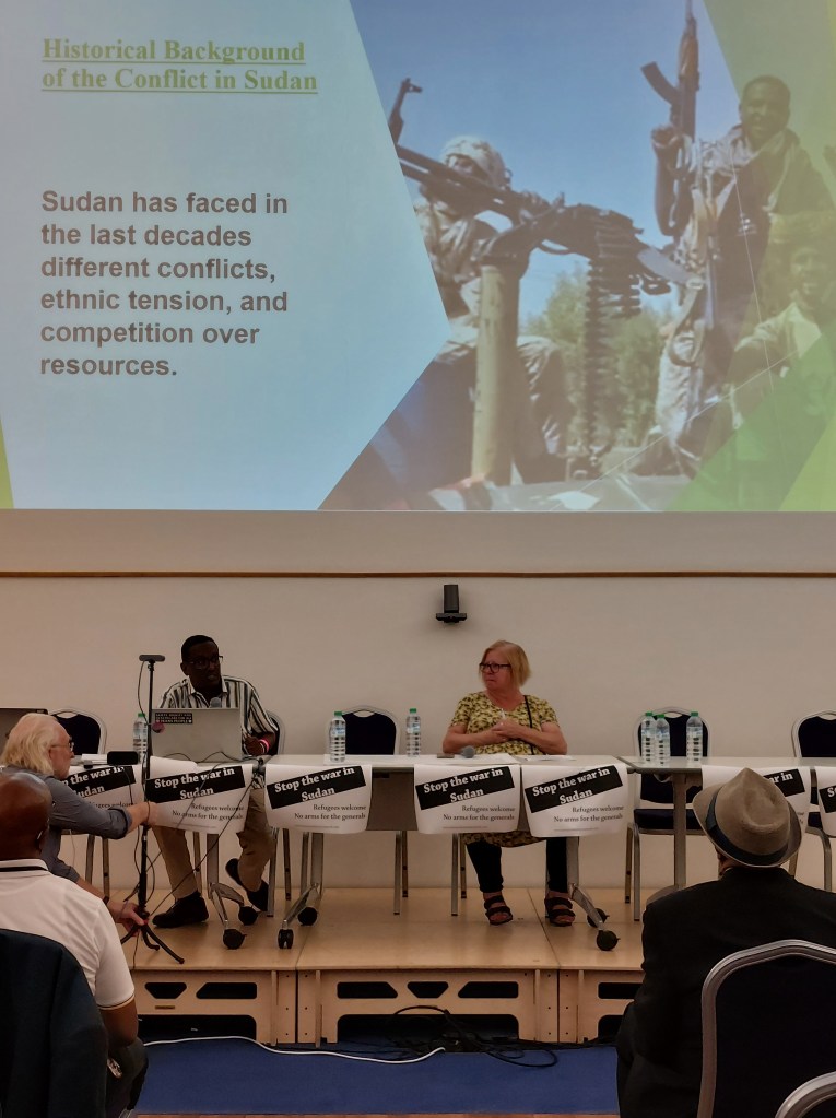 على خلفية اندلاع النزاع المسلح في ١٥ أبريل ٢٠٢٣ بعد الانقلاب العسكري الذي حدث في أكتوبر ٢٠٢١ و الكفاح طويل الأمد من أجل الديمقراطية منذ عام ٢٠١٨، أوضحت الجلسة الافتتاحية الراهن السوداني و الأدوار التي لعبتها القوى الخارجية، بما في ذلك الحكومة البريطانية في تشكيل الأزمة السودانية