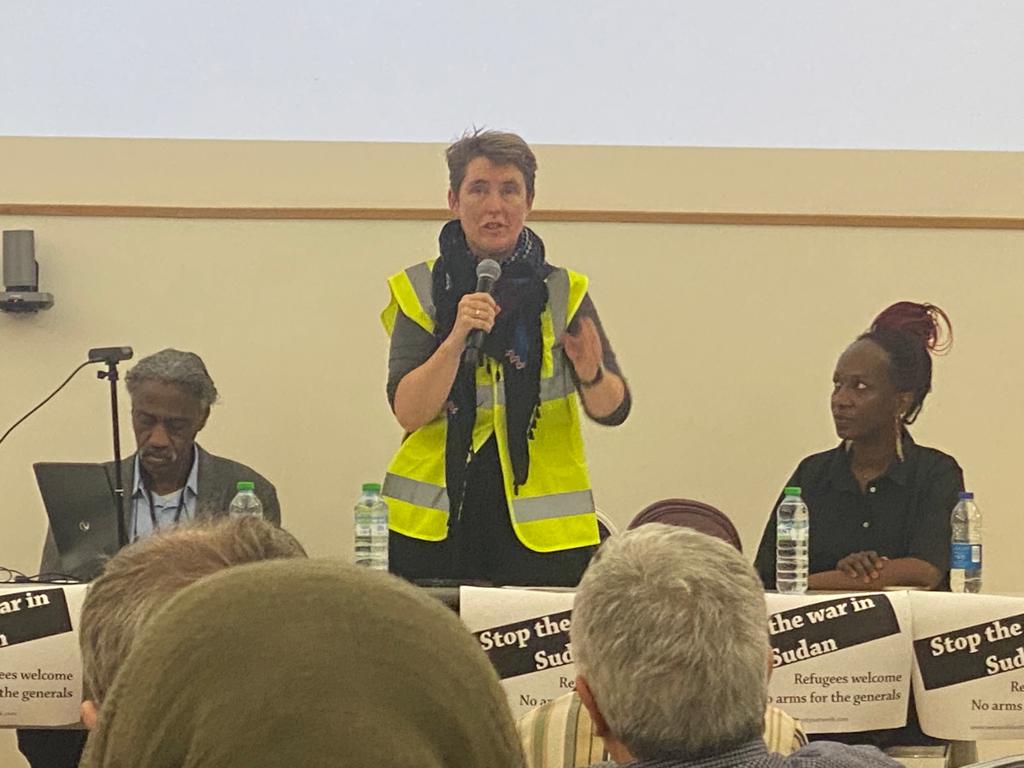 أعرب خالد سيدأحمد، ممثلاً عن شبكة التضامن مع الشرق الأوسط و شمال إفريقيا، عن تضامنه مع المضربين عن العمل من نقابة سائقي القطارات الذين كانوا في حالة إضراب في نفس اليوم. كما تطرق إلى الديناميكيات المعقدة للصراع السوداني، مسلطًا الضوء على تورط المجتمع الدولي في إشعال و إدامة الحرب في السودان. و طالب سيداحمد الحكومة البريطانية بوقف مبيعات الأسلحة إلى دول الجوار في السودان كخطوة اساسية نحو إنهاء الصراع. شدد سيداحمد على أهمية إظهار الدعم والمؤازرة من خلال المشاركة في الإضرابات و التضامن مع العمال المضربين. بالإضافة إلى ذلك، وجه نداء لكل البريطانيين والسودانيين المتواجدين في القاعة و المقيمين في المملكة المتحدة للعمل معا و لتكوين علاقات أقوى وأكثر تعاونًا.