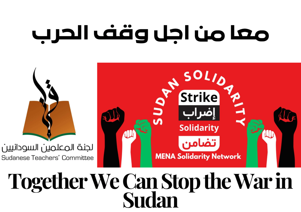 MENA Solidarity fully supports the Sudanese Teachers’ Committee’s campaign to stop the war. We call on all trade unions, human rights groups, and peace-loving people to support this campaign and amplify the voices of Sudanese teachers against the war.