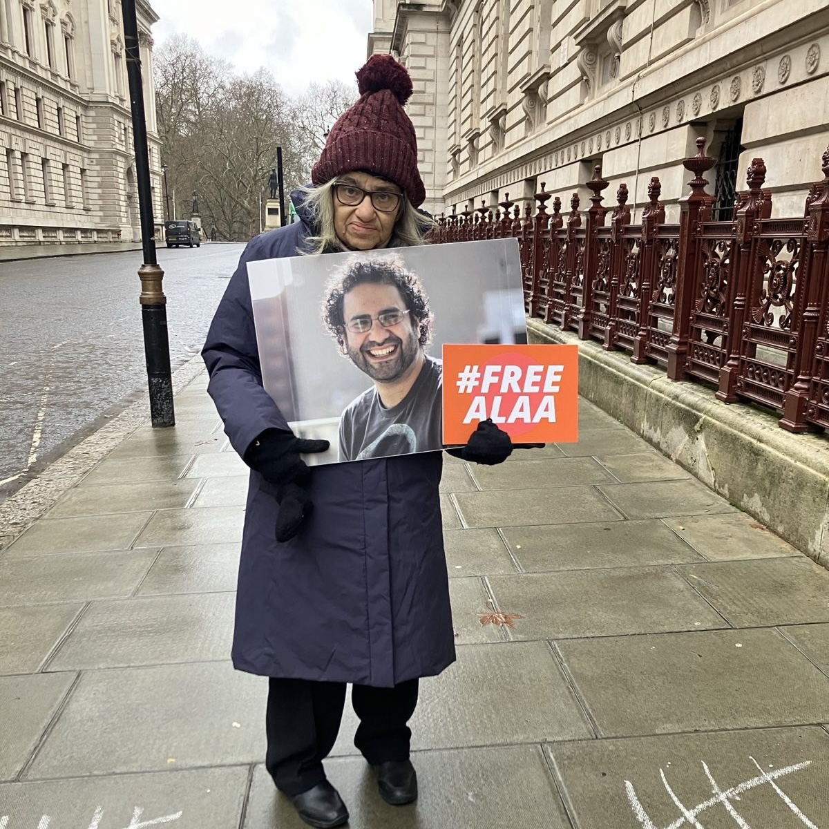 Laila Soueif, mother of British citizen Alaa Abdel Fattah, a writer, software developer and prominent pro-democracy activist jailed by Egypt’s authoritarian regime for most of the last ten years, will be organising regular protests outside Downing Street from 13 January. Alaa’s case has hit the news in recent months as his family have stepped up pressure on Foreign Secretary David Lammy and Prime Minister Keir Starmer over his continued detention in Egypt. Laila Soueif has been on hunger strike demanding his release since 30 September and took her protest outside the Foreign Office in London before Christmas.