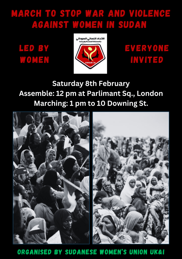 MENA Solidarity stands in unwavering solidarity with the Sudanese Women’s Union UK & I as they lead a march in support of the revolution and in resistance against the ongoing war in Sudan and the appalling violence perpetrated against women.