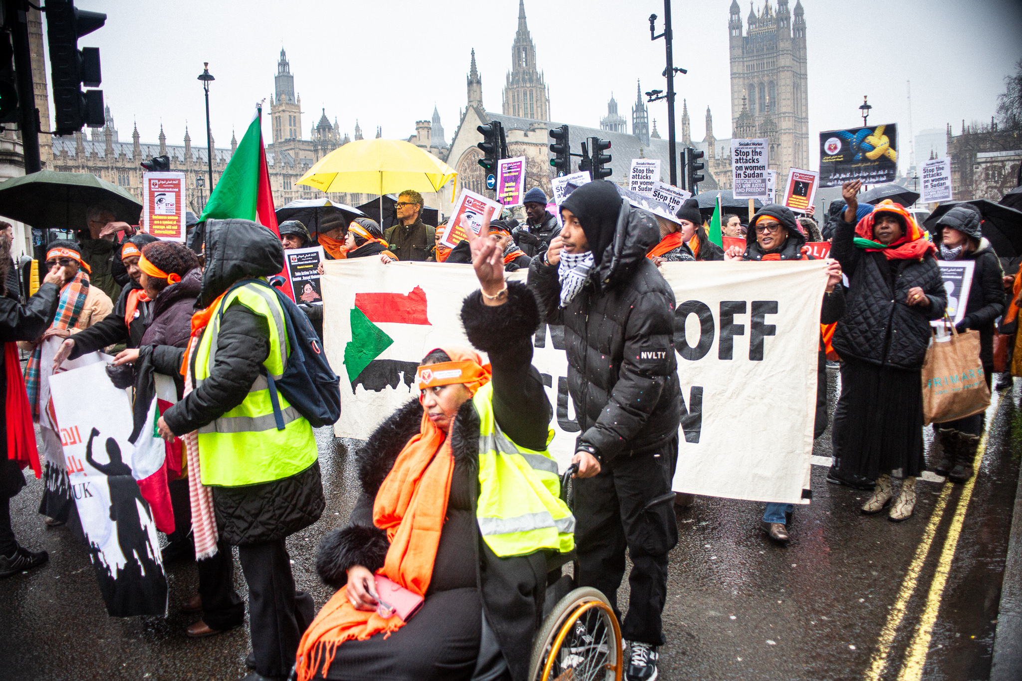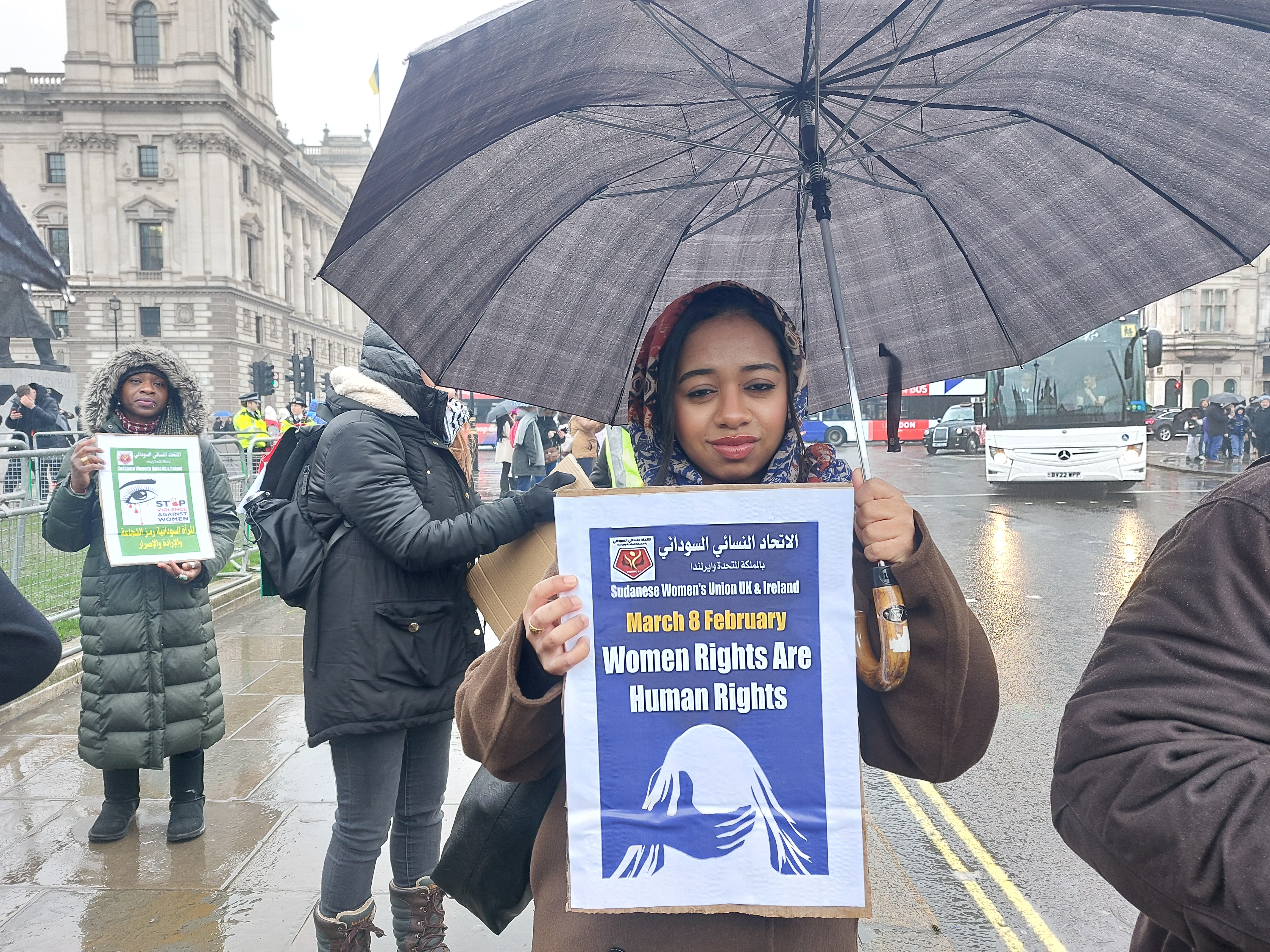 The march was organised by the Sudanese Women’s Union UK & Ireland (SWUUK&I) to protest the ongoing war in Sudan and the escalating violence against women. Despite Sudanese women’s long and vital role in every revolution and struggle in Sudan—including their leadership in the 2018 revolution—they have consistently faced oppression under successive dictatorships, particularly during Omar al-Bashir’s regime since 1989.