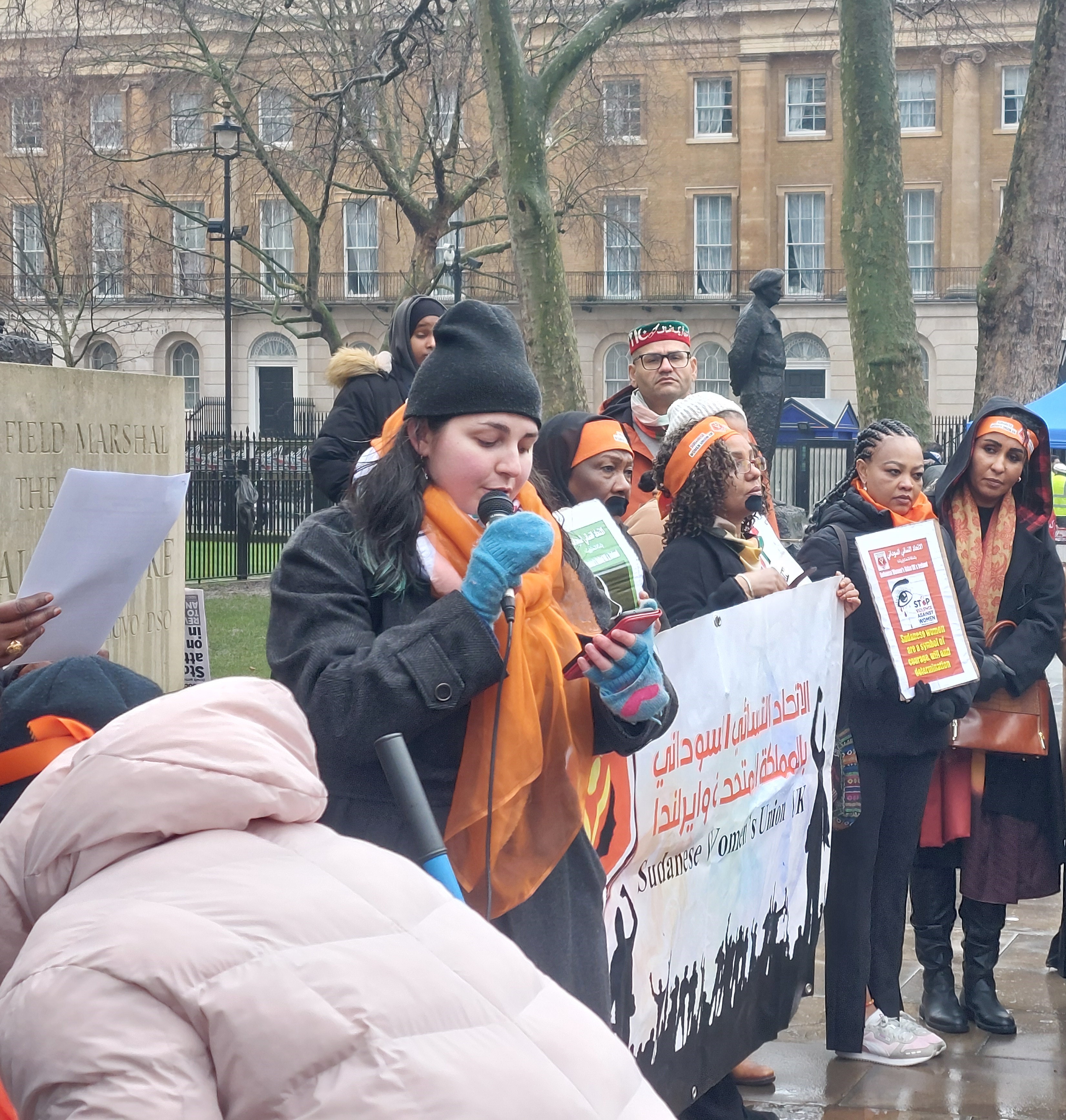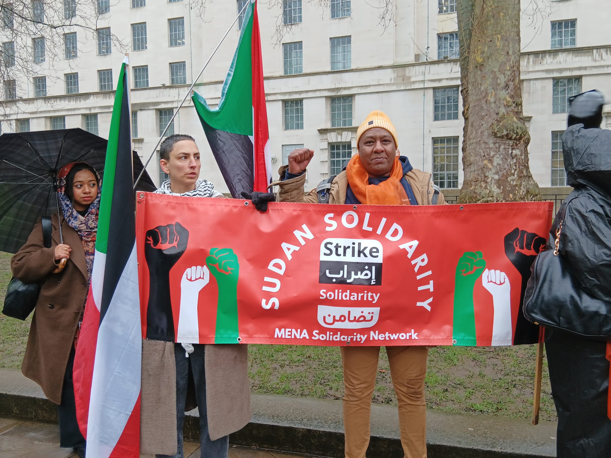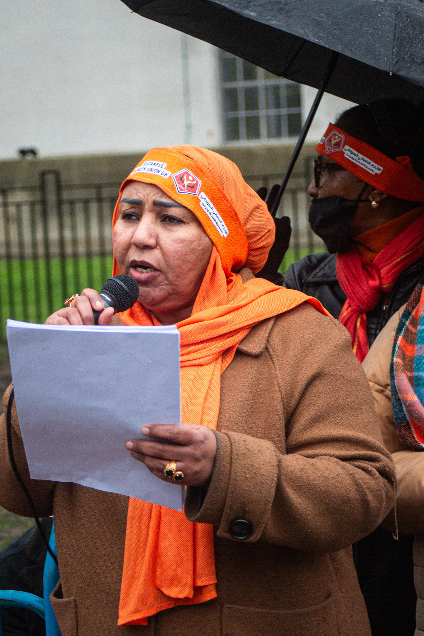 What the people of Sudan are enduring is horrific, but the power of resistance remains—in all those who overthrew the rotten dictator Omar al-Bashir, in all those who organised Resistance Committees, independent trade unions, and campaigns demanding refugee rights and environmental justice. The spirit of the revolution lives on in the resistance of the people, in this protest today, and in the brave women revolutionaries who will continue to fight for justice, self-determination, and liberation for all.