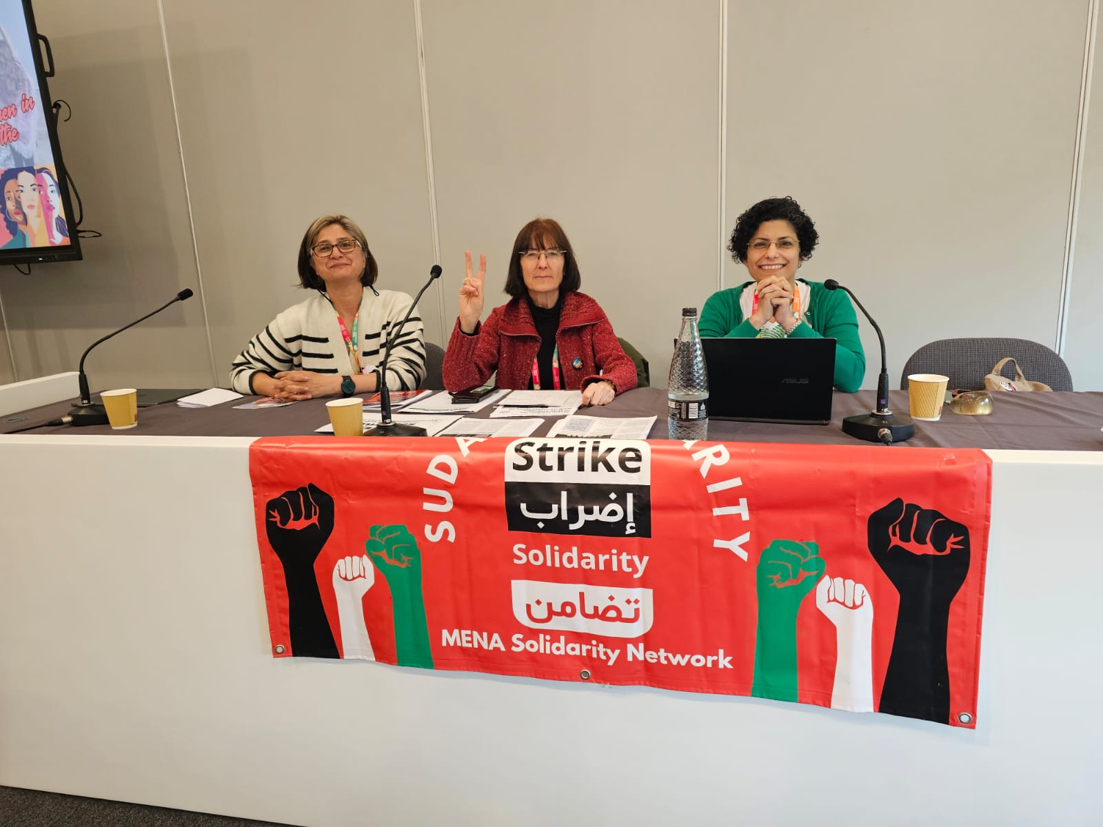 At our annual NEU conference 2000 delegates representing 500,000 education workers in England and Wales make conference policy and discuss many international issues. This year MENA Solidarity held a fringe meeting, ‘Women at the Frontline of the Struggle’ with speakers from Iran, Syria and Sudan.