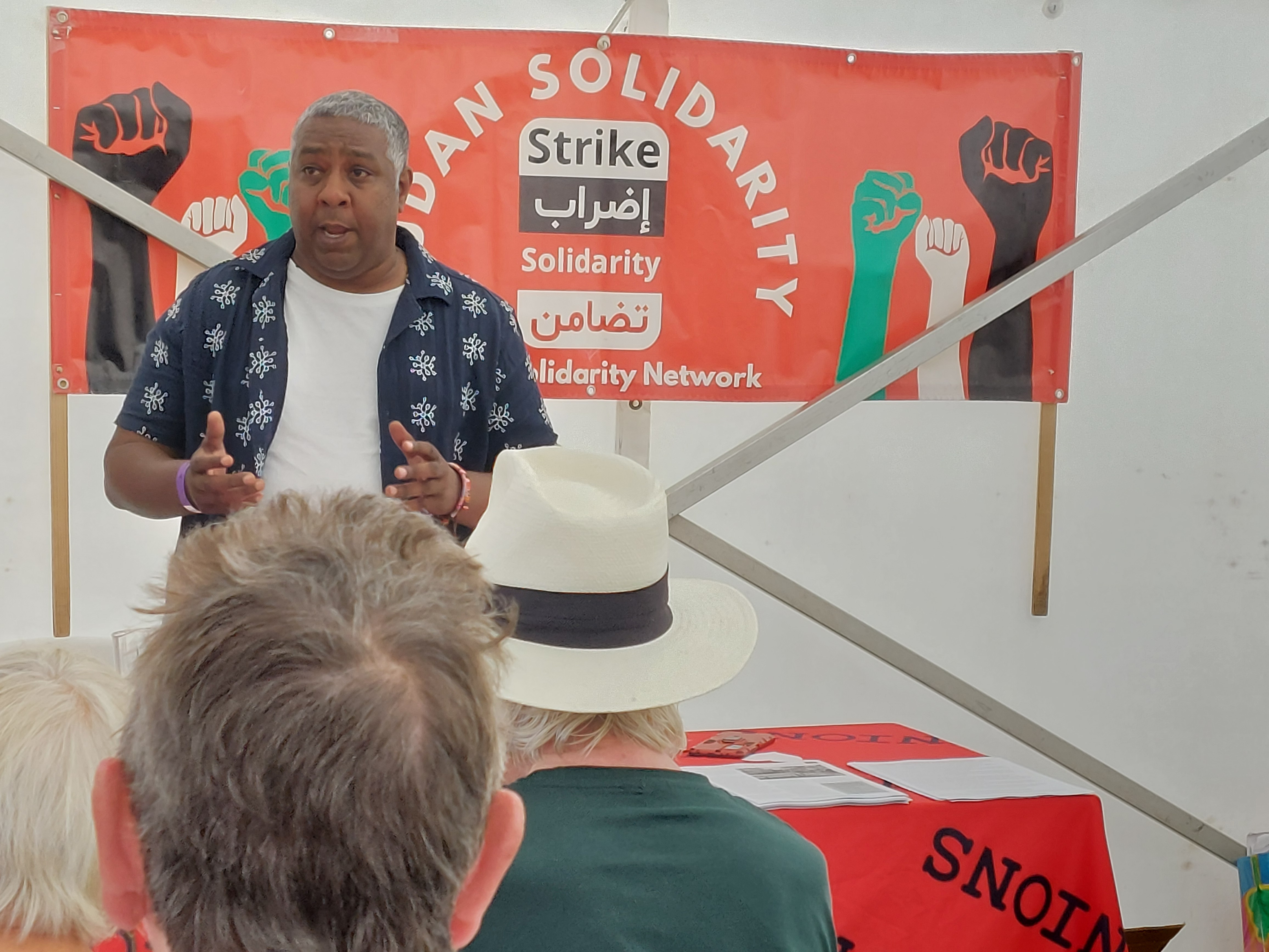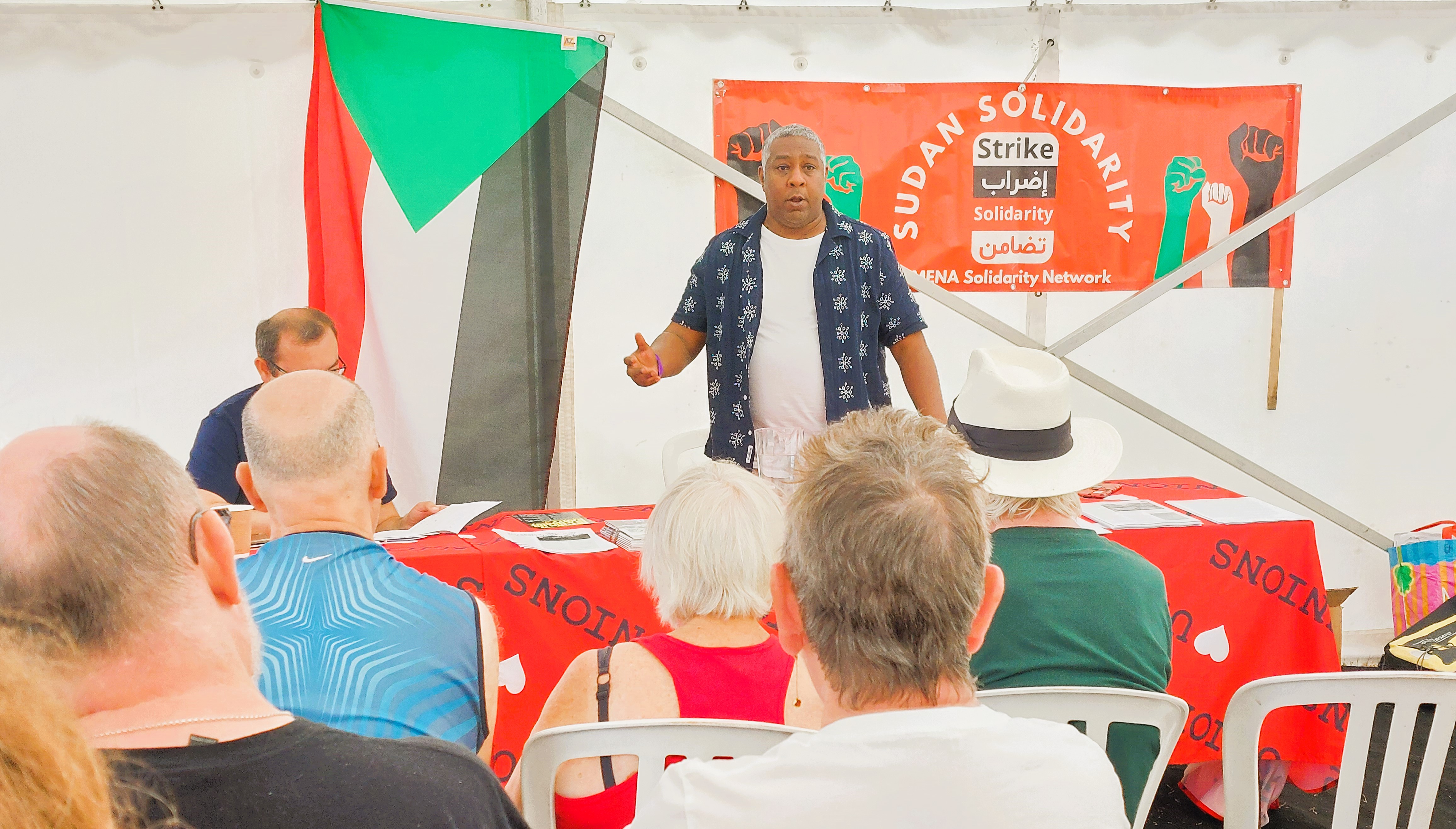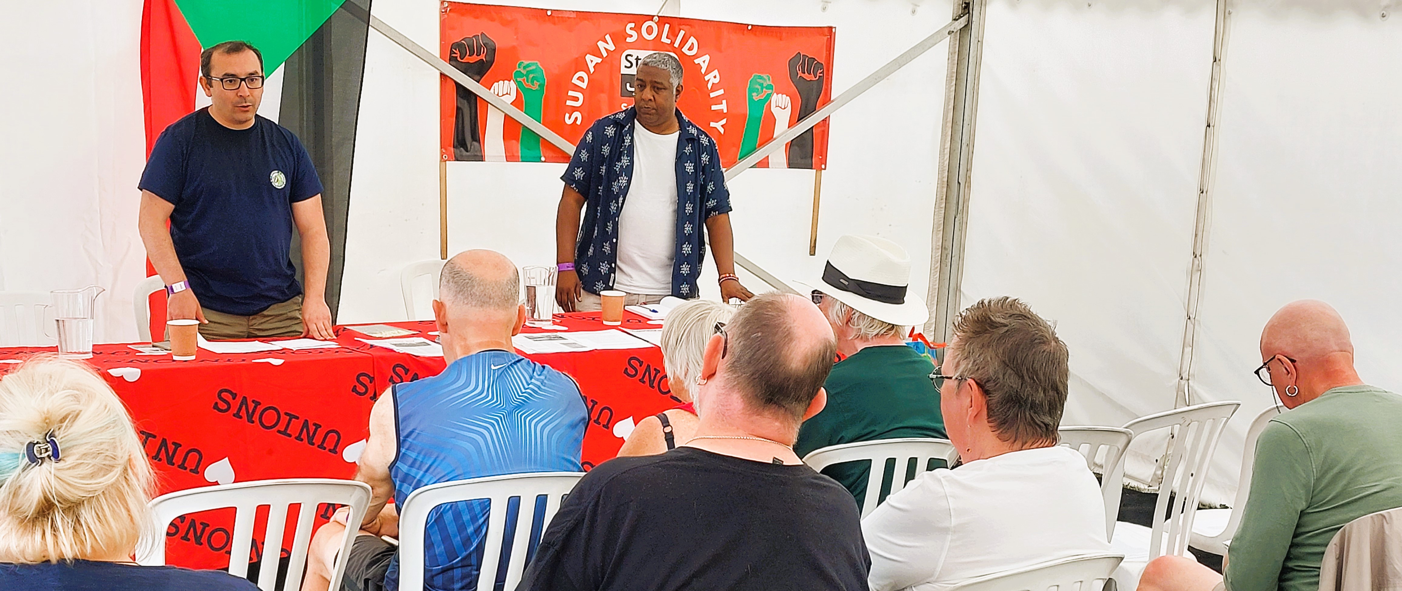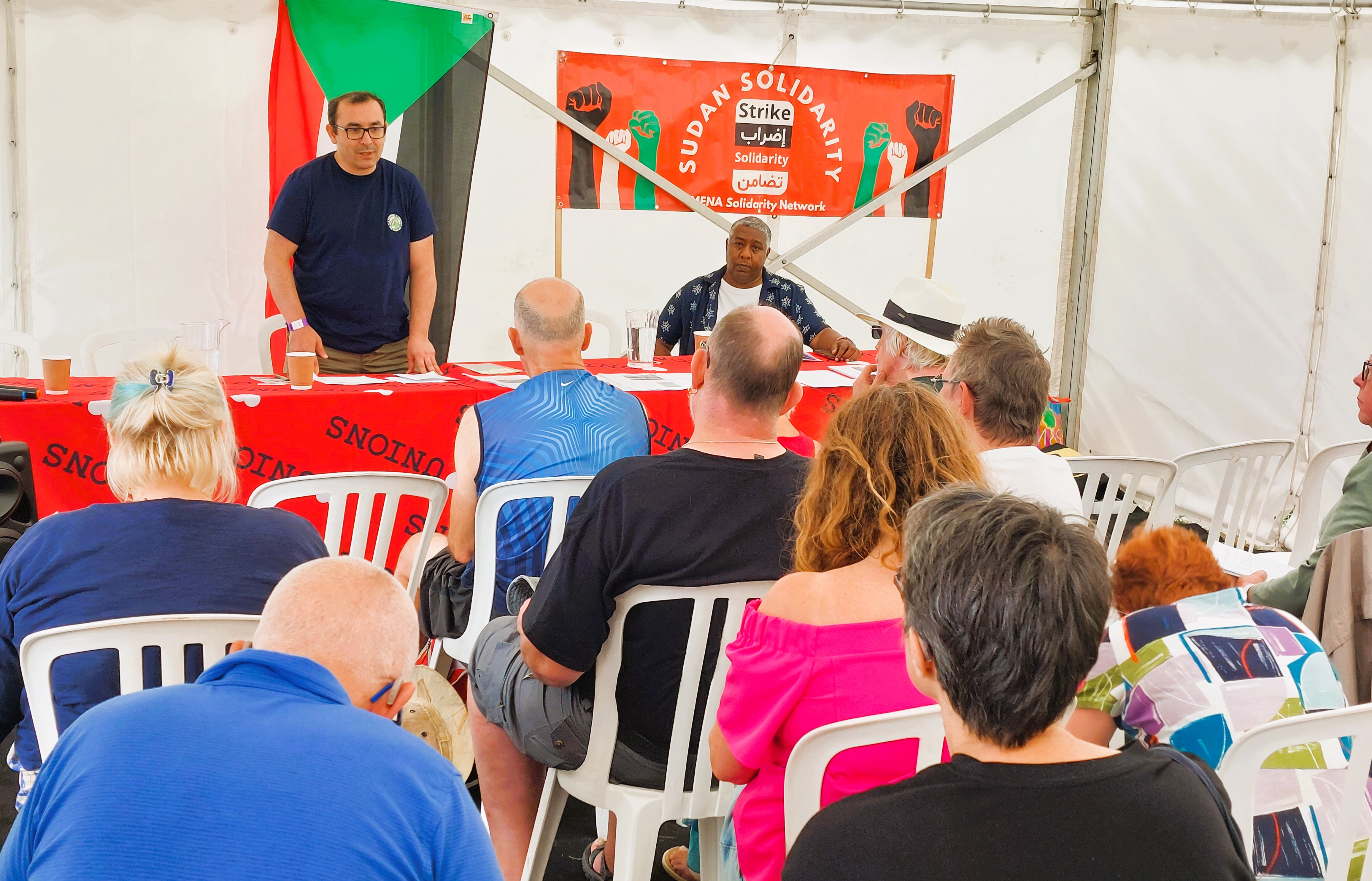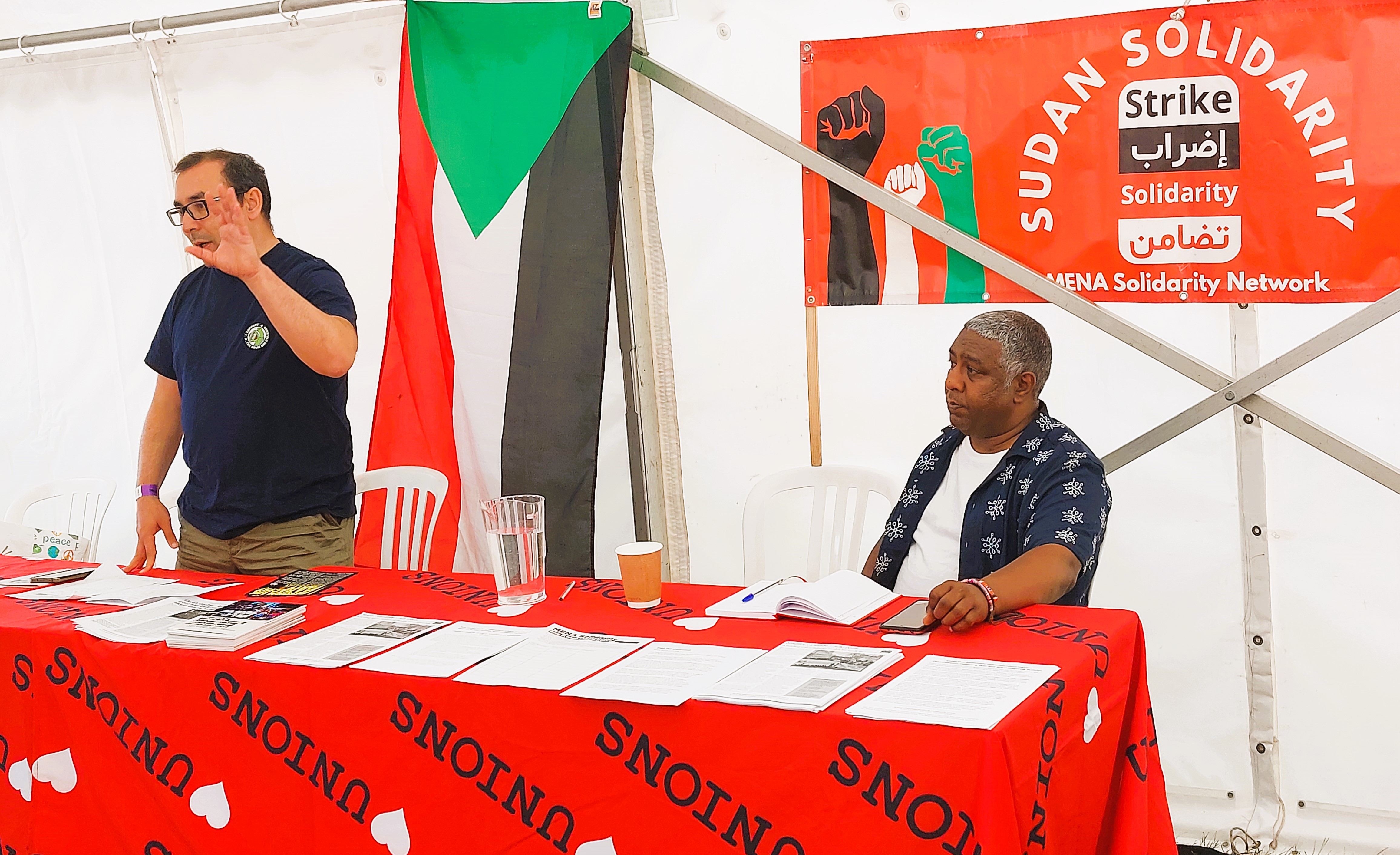 On Saturday, July 19, MENA Solidarity hosted a session in the International Tent titled “Workers Organising for Justice: Voices from Syria and Sudan“. The session was well-attended and engaged the audience effectively.