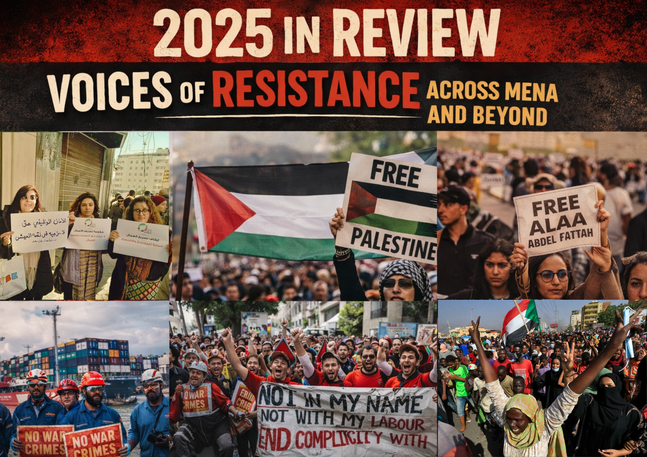 As 2025 draws to a close — and we prepare to step into 2026 — we at MENA Solidarity Network write to you in solidarity, gratitude and revolutionary resolve. Below is a roundup of the key articles we published since 1 January 2025 — a record of struggle, resistance and international working-class solidarity across the Middle East and beyond. These reports, analyses and actions map out the terrain of resistance — from war zones and imperialist supply-chains to workers’ solidarity across borders.