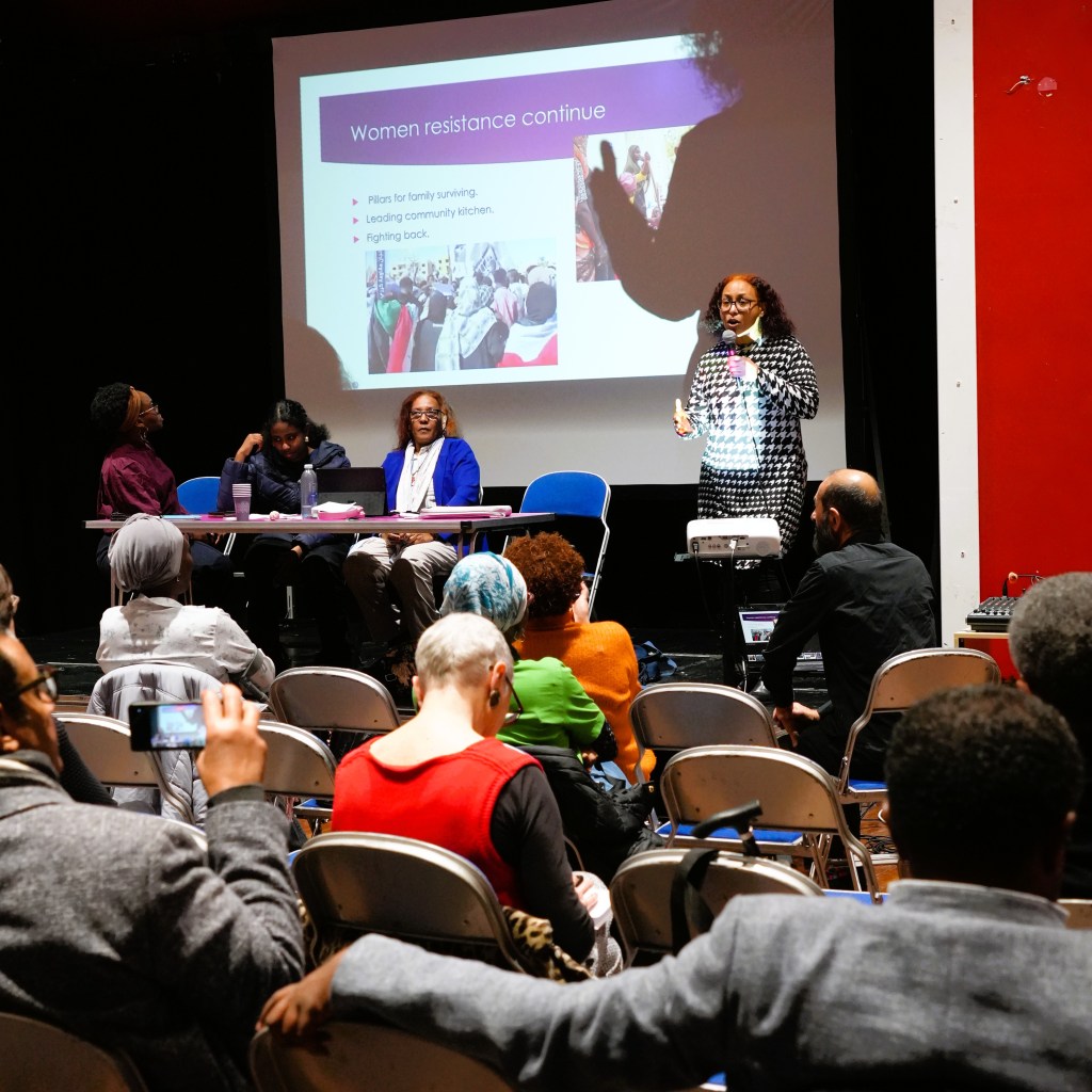 Saeed concluded with a powerful call to action, connecting Sudan to global struggles: “From Sudan to Britain to Palestine, our struggles are connected…From Gaza to Darfur, stop killing, stop the war. Our solidarity must be international”.