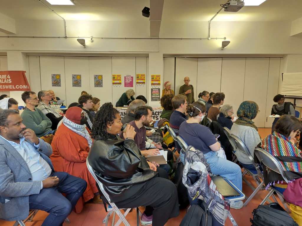 This workshop explored patterns of systemic racism — especially within UK and European policies — that compound the suffering caused by war, and how activists can build campaigns that unite anti‑racism with solidarity for refugees. Speakers also discussed the Together Alliance protest on 28 March against racism and fascism and addressed how anti‑migrant rhetoric undermines collective humanity and calls for safe passage and dignified treatment.